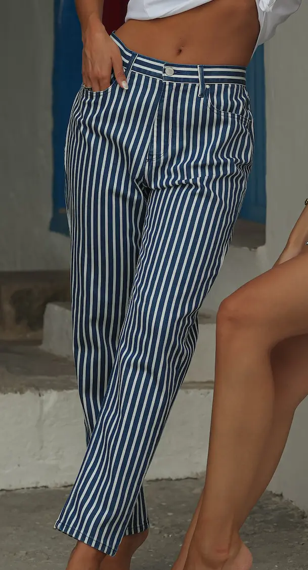 Navy Calças de cintura subida ,com riscas.